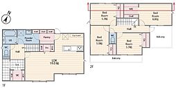 | 間取り | 3LDK 間取り内訳:リビングダイニングキッチン 17帖(1階)・洋室 11帖(2階)・洋室 5.2帖(2階)x2 |