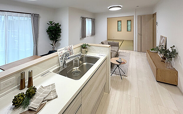 ■学校やスーパーなどにも程よく近く生活環境も充実 ■対面式キッチンはLDKを見渡せるので小さなお子様のいるご家庭も安心です! ■1号棟・7号棟はプライベート感のある中庭をご用意しています。