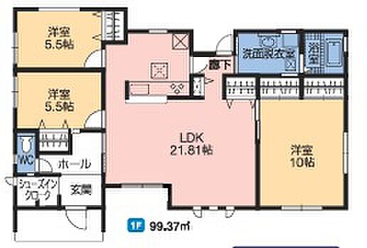 | 間取り | 3LDK 間取り内訳:リビングダイニングキッチン 21.8帖(1階)・洋室 10帖(1階)・洋室 5.5帖(1階)・洋室 5.5帖(1階) |