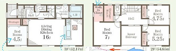 | 間取り | 4LDK 間取り内訳:洋室 4.5帖(1階)・リビングダイニングキッチン 16帖(1階)・洋室 7帖(2階)・洋室 5.2帖(2階)・洋室 4.7帖(2階) |