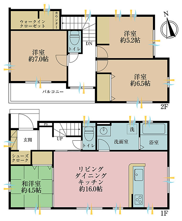 • 「建築条件付き土地」の「建物プラン例」は、土地購入者の設計プランの一例であり、プランの採用可否は任意です。