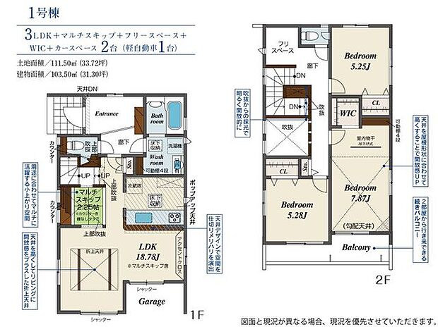 間取り内訳:リビングダイニングキッチン 18.7帖(1階)・洋室 7.8帖(2階)・洋室 5.2帖(2階)・洋室 5.2帖(2階)
