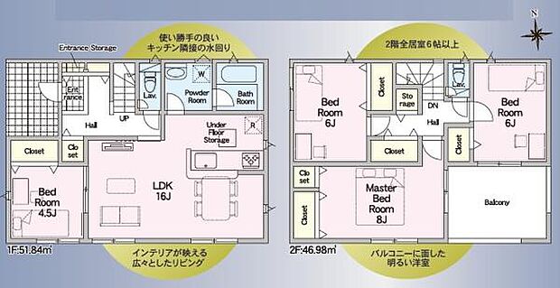 | 間取り | 4LDK 間取り内訳:リビングダイニングキッチン 16帖(1階)・洋室 4.5帖(1階)・洋室 8帖(2階)・洋室 6帖(2階)・洋室 6帖(2階) |