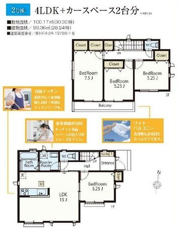 | 間取り | 4LDK 間取り内訳:リビングダイニングキッチン 15帖・洋室 7.5帖・洋室 5.2帖・洋室 5.2帖・洋室 5.2帖 |