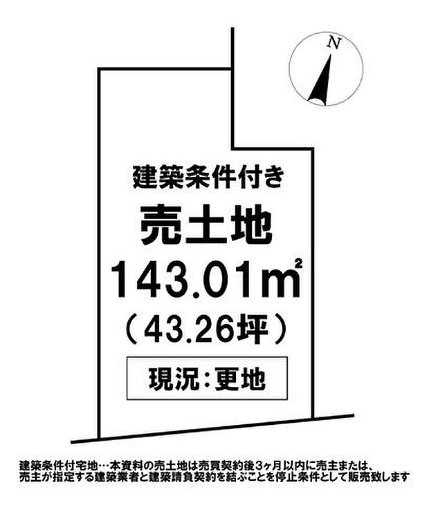 • 「建築条件付き土地」とは、一定期間内(概ね3ヶ月程度)に特定の建設会社と建築請負契約を結ぶことを 条件にしている宅地のことです。