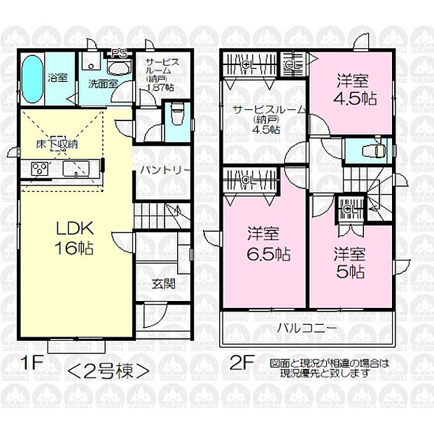サービスルーム1.87帖/パントリー/LDK16帖/カースペース2台可(車種による)/住環境良好