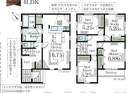 • 「土地(建築条件なし)」の「建物プラン例」に関して、そのプラン例は特定の建築請負会社によるもので、当該建築請負会社以外で建てた場合、同様のものが同価格で建てられるとは限りません。また、建築請負会社を特定するものではありません。