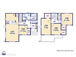 | 間取り | 4LDK 間取り内訳:リビングダイニングキッチン 16帖(1階)・洋室 3帖(1階)・洋室 7.5帖(2階)・洋室 5.2帖(2階)・洋室 5.2帖(2階) |