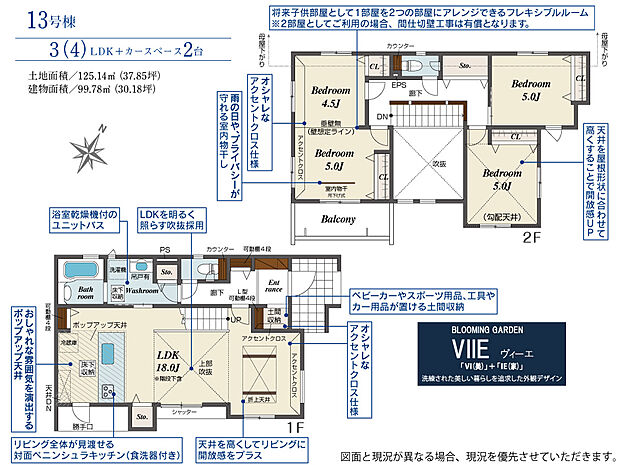 - 「建築条件付き土地」の「建物プラン例」は、土地購入者の設計プランの一例であり、プランの採用可否は任意です。