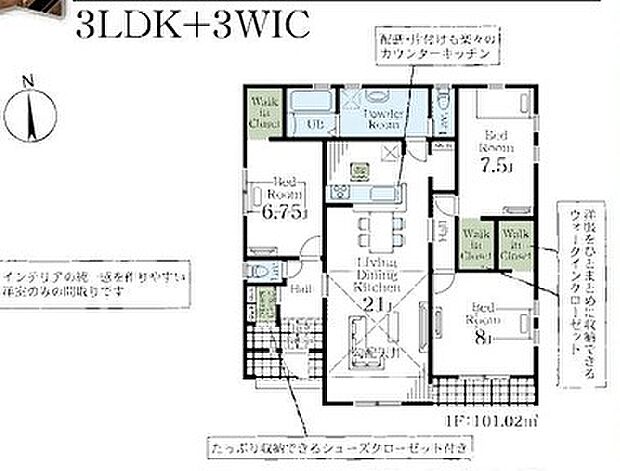◆子育てグリーン住宅支援金取得物件(80万)◆長期優良住宅◆LDK21帖、WIC3ヶ所付きで収納に大変便利です◆南道路に面し日当たり良好、平家建
