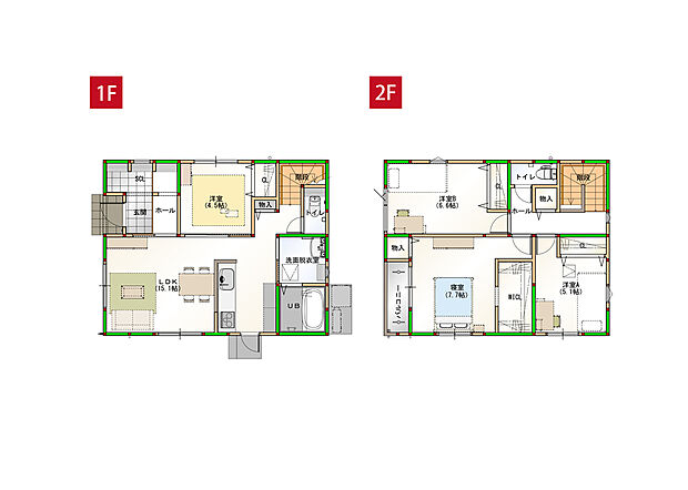 - 「建築条件付き土地」の「建物プラン例」は、土地購入者の設計プランの一例であり、プランの採用可否は任意です。