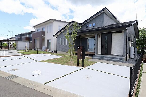かすみがうら市立下稲吉小学校から徒歩30mの通学も安心な場所に平屋が完成しました。外観もお洒落でウッドデッキも付いています。南道路付けで車の出し入れも楽々です。