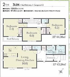 | 間取り | 4LDK 間取り内訳:リビングダイニングキッチン 18帖(1階)・洋室 8.3帖(2階)・洋室 7.1帖(2階)・洋室 5.1帖(2階)・洋室 4.5帖(2階) |
