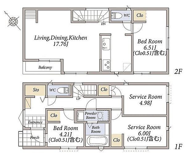 間取り 2LDK+2S 建物階 木造、地上2階建て