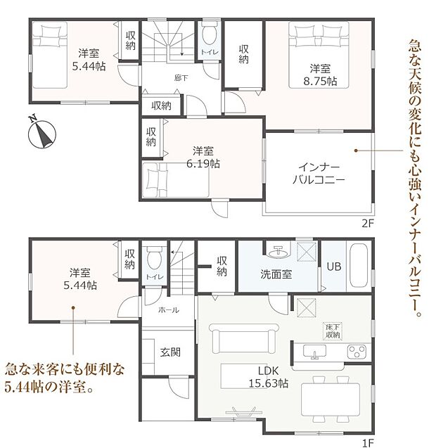 ◆心地よい広々とした開放的なLDK♪雨の日に洗濯物も干せる浴室乾燥機付き!節水型トイレで家計に優しい♪全居室収納あり◎お部屋をスッキリ使えます♪急な雨でも安心!インナーバルコニー◎駐車場2台可能♪