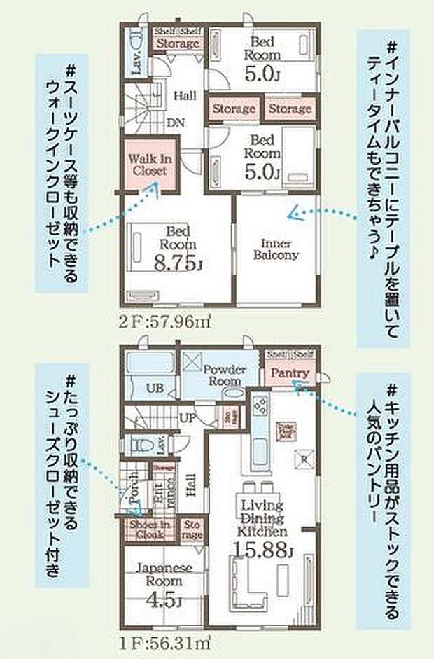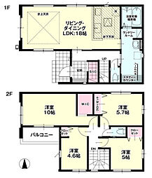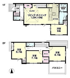| 間取り | 4LDK 間取り内訳:洋室 5帖(2階)・洋室 5帖(2階)・リビングダイニングキッチン 15.8帖(1階)・和室 4.5畳(1階)・洋室 8.7帖(2階) |