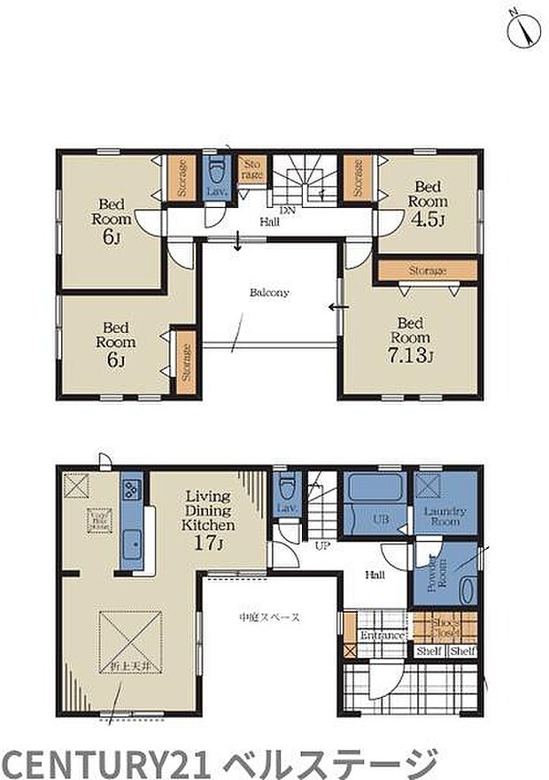 | 間取り | 4LDK 間取り内訳:リビングダイニングキッチン 17帖(1階)・洋室 7.1帖(2階)・洋室 6帖(2階)・洋室 6帖(2階)・洋室 4.5帖(2階) |