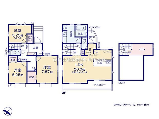 | 間取り | 3LDK 間取り内訳:洋室 7.8帖(1階)・洋室 5.2帖(1階)x2・リビングダイニングキッチン 20帖(2階) |