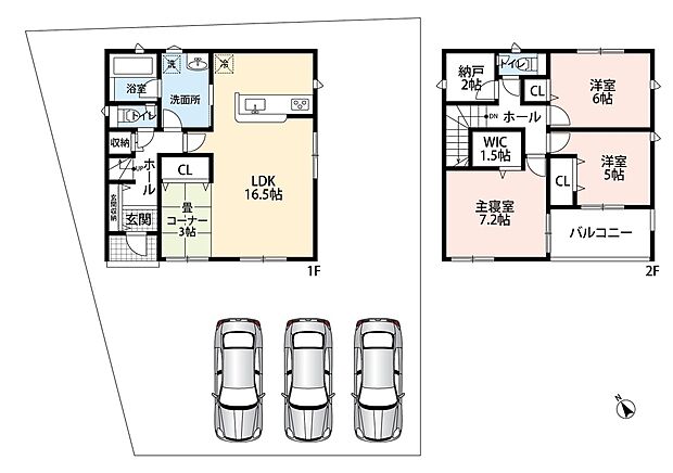• 「建築条件付き土地」の「建物プラン例」は、土地購入者の設計プランの一例であり、プランの採用可否は任意です。