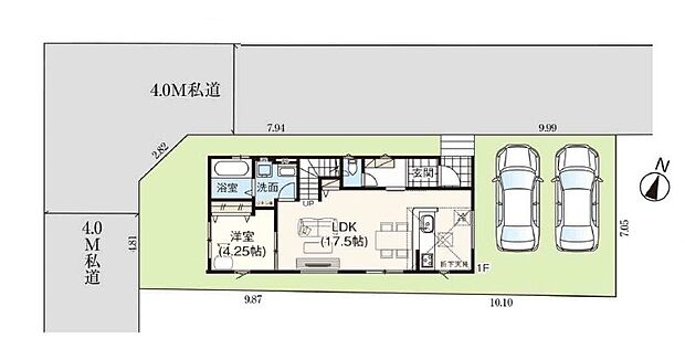 • 北 (私道 幅員 4.00m 接面 17.80m)