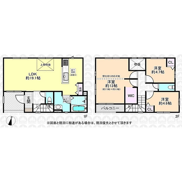 • 「建築条件付き土地」の「建物プラン例」は、土地購入者の設計プランの一例であり、プランの採用可否は任意です。