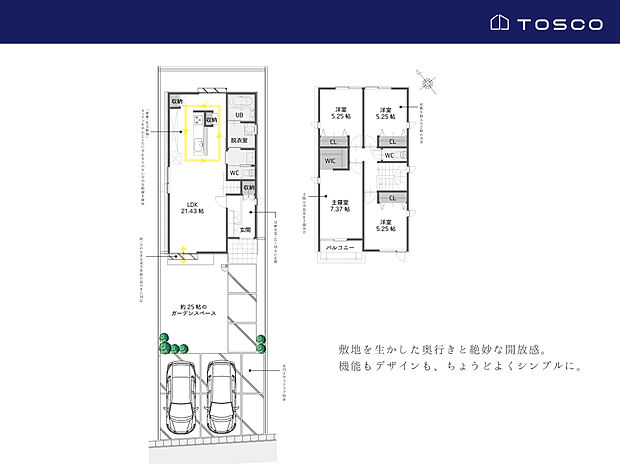 南向き・21帖リビング、回遊動線のあるキッチン ・キッチンをぐるっと回れる間取りで、家事効率アップ!時短に繋がります ・名鉄犬山線「江南」駅まで自転車7分。忙しい朝・疲れて帰る夜に嬉しいポイント ・前面道路が広いので駐車がラク。並列2台駐車可