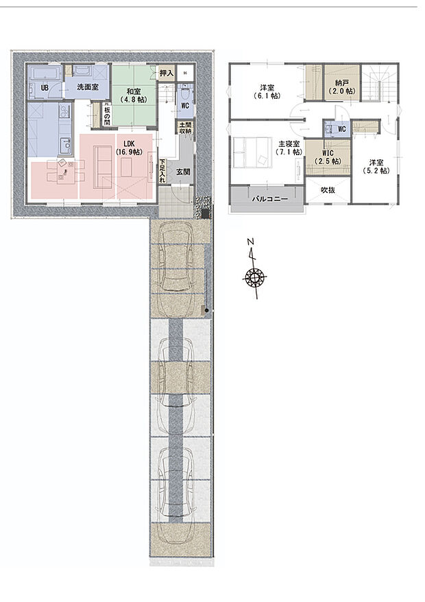 • 「建築条件付き土地」の「建物プラン例」は、土地購入者の設計プランの一例であり、プランの採用可否は任意です。