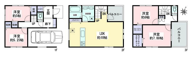 | 間取り | 4LDK 間取り内訳:リビングダイニングキッチン 18帖(2階) |