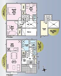 | 間取り | 4LDK 間取り内訳:和室 3畳(1階)・リビングダイニングキッチン 18.4帖(1階)・洋室 6帖(1階)x2 |