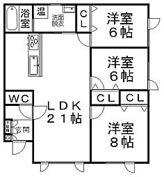 | 間取り | 3LDK 間取り内訳:リビングダイニングキッチン 22.5帖(1階)・洋室 6帖(1階)・洋室 8.1帖(1階)・洋室 6帖(1階) |