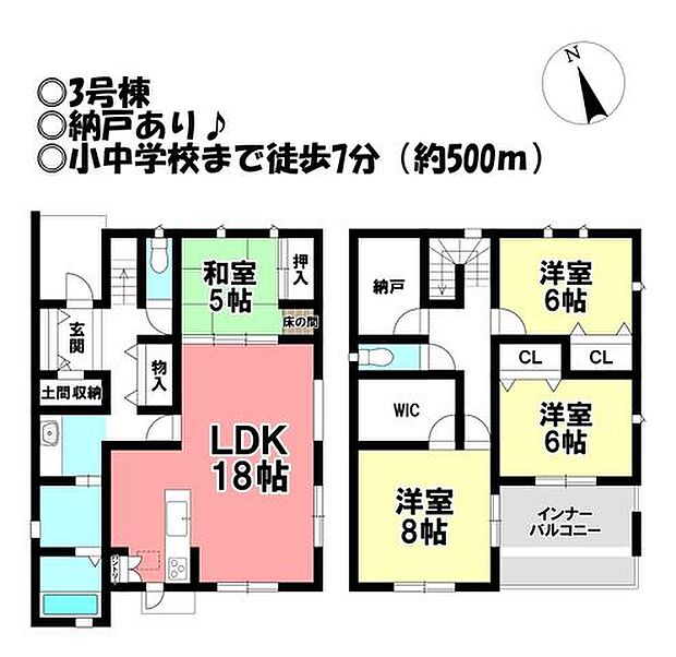 金屋小学校・金屋中学校。小中学校まで徒歩7分!(約500m)※資料請求・見学予約は下部の「見学予約する」「資料請求・お問合せ」よりお気軽にお問い合わせください!