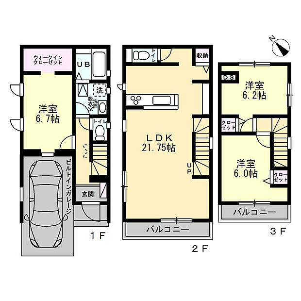 | 間取り | 3LDK 間取り内訳:リビングダイニングキッチン 21.7帖・洋室 6.7帖・洋室 6.2帖・洋室 6帖 |
