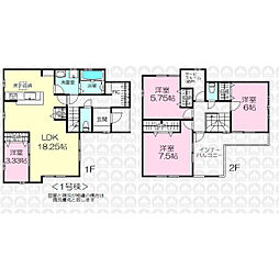 間取り内訳:リビングダイニングキッチン 15.7帖(1階)・洋室 5帖(1階)・洋室 7帖(2階)・洋室 5.8帖(2階)・洋室 5.2帖(2階)