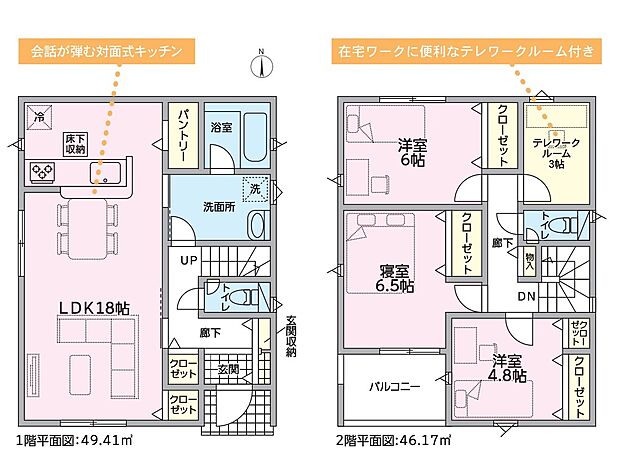 | 間取り | 3LDK(3LDK) 間取り内訳:リビングダイニングキッチン 18帖(1階)・洋室 4.8帖(2階)・洋室 6帖(2階)・洋室 6.5帖(2階)・その他 3帖(2階) |