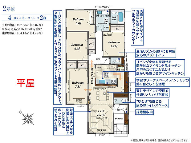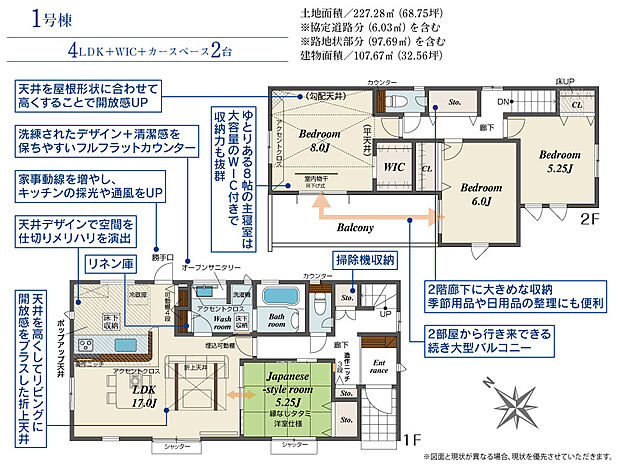 | 土地面積 | 227.28m2(約68.75坪)~227.68m2(約68.87坪) | ||