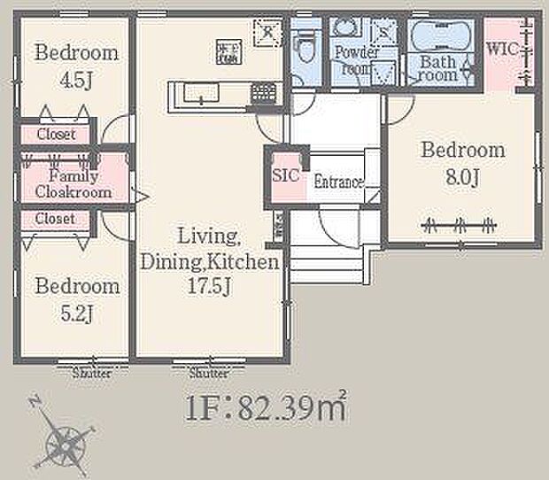 間取り内訳:リビングダイニングキッチン 17.5帖(1階)・洋室 8帖(1階)・洋室 4.5帖(1階)・洋室 5.2帖(1階)