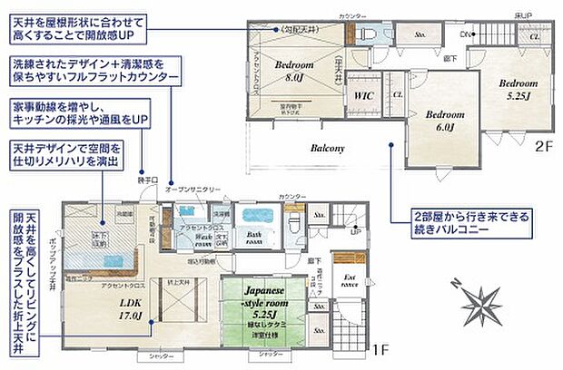 | 間取り | 4LDK 間取り内訳:和室 5.2畳(1階)・リビングダイニングキッチン 17帖(1階)・洋室 8帖(2階)・洋室 6帖(2階)・洋室 5.2帖(2階) |