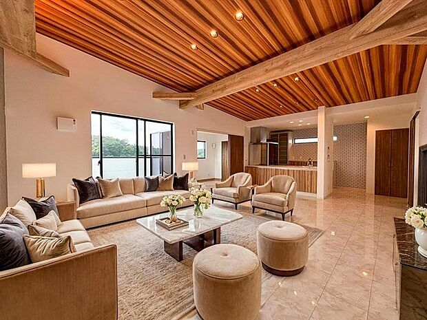 ■THE・ガレージハウス■~ガレージ含むP2台可能な敷地とウッドテラス・勾配天井・タイル張りの高級感溢れるリビング空間~たまプラーザ駅まで徒歩圏の落ち着いた住環境です~