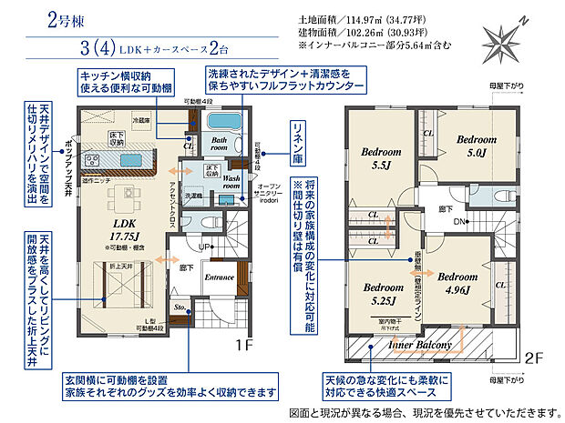 | 土地面積 | 114.97m2(約34.77坪)~120.65m2(約36.49坪) | ||