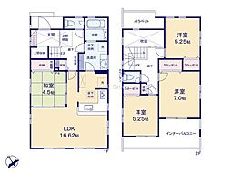 間取り内訳:リビングダイニングキッチン 15帖(1階)・洋室 8.5帖(2階)・洋室 7.2帖(2階)・洋室 5.2帖(2階)・収納 3帖(1階)