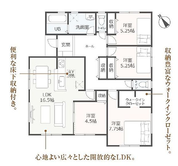 | 間取り | 4LDK 間取り内訳:リビングダイニングキッチン 16帖(1階)・洋室 7帖(1階)・洋室 5.2帖(1階)・洋室 5.2帖(1階)・洋室 4.8帖(1階) |