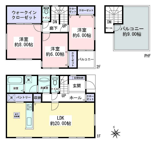 開放感あるスカイバルコニーがあるおうち 全居室6帖以上とゆとりある住空間です。WIC、パントリー付。