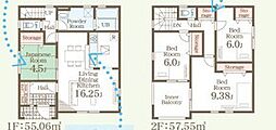 | 間取り | 4LDK 間取り内訳:洋室 8.6帖(2階)・洋室 5.2帖(2階)x2・リビングダイニングキッチン 16.5帖(1階)・洋室 3帖(1階) |