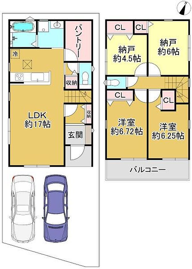 ■4区画分譲地の1号棟 南東向きにつき日当り良好■大型パントリーがありまとめ買いした食品の保管に便利