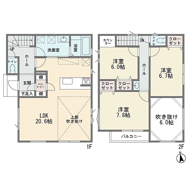 | 間取り | 3LDK 間取り内訳:リビングダイニングキッチン 20.6帖・洋室 7.8帖・洋室 6.7帖・洋室 6帖 |