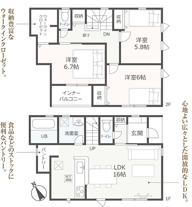 ◆名鉄小牧線「小牧原」駅まで徒歩4分の好立地◎「ただいま」「おかえり」など家族のコミュニケーションがとれるリビング階段◎キッチンがスッキリ!パントリー収納有◎大容量のWIC付♪駐車場2台可能♪
