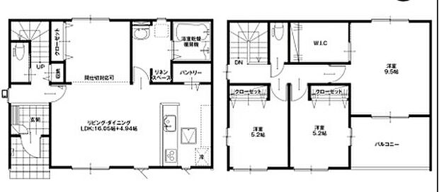 | 間取り | 3LDK 間取り内訳:リビングダイニングキッチン 20.9帖(1階)・洋室 9.5帖(2階)・洋室 5.2帖(2階)・洋室 5.2帖(2階) |