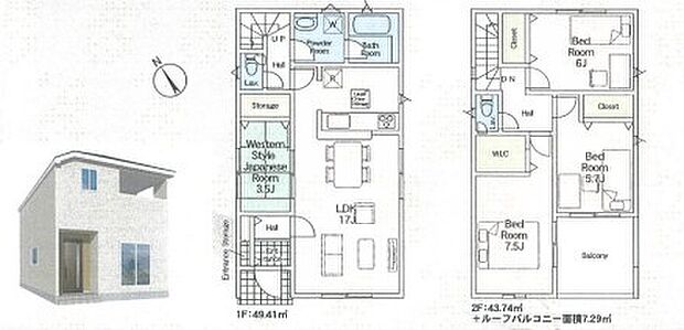 間取り内訳:リビングダイニングキッチン 17帖・洋室 7.5帖・洋室 6帖・洋室 5.7帖・和室 3.5畳