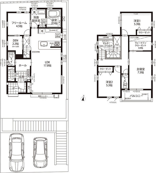 • 「建築条件付き土地」の「建物プラン例」は、土地購入者の設計プランの一例であり、プランの採用可否は任意です。