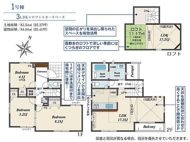 - 「建築条件付き土地」の「建物プラン例」は、土地購入者の設計プランの一例であり、プランの採用可否は任意です。